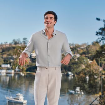 • Smart Casual: Jae Tapered Pleat Pant + Germaine Linen Textured Shirt.