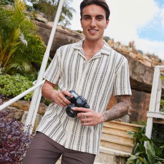 A textured short sleeve shirt and linen short is the easy, sharp combo you need for your getaway.