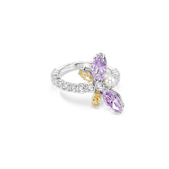 Creativity takes flight in this open dragonfly ring. The wings of the dragonfly reveal purple and yellow shades, giving you a vivid piece of jewellery to express personal transformation.